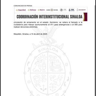 Con acciones como esta, los gobiernos federal y estatal cumplen con su compromiso de salvaguardar la tranquilidad de la sociedad sinaloense e inhibir la circulación de armamento en el estado. Asimismo, se reitera el llamado a la ciudadanía para marcar oportunamente al 911 para emergencias o al 089 para realizar denuncias anónimas.