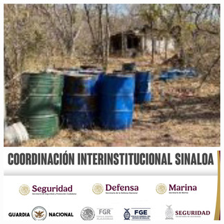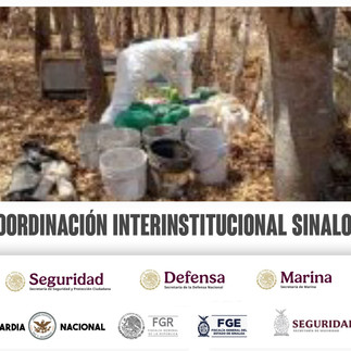 Personal del Ejército Mexicano, en coordinación con la Guardia Nacional, la Secretaría de Marina, la Fiscalía General de la República, la Fiscalía General del Estado y la Secretaría de Seguridad Pública, aseguró y desmanteló 10 laboratorios clandestinos en los municipios de Culiacán y Cosalá.