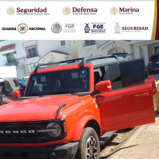 Al extender los reconocimientos, localizaron otra camioneta de la marca Ford, línea Bronco, sin placas, que también resultó robada. Al realizar una inspección visual en el interior, encontraron dos bolsas plásticas con aproximadamente 2,000 pastillas con características del fentanilo.
