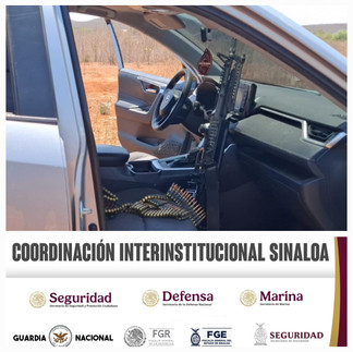 Elementos de la Guardia Nacional, en coordinación con el Ejército Mexicano, la Secretaría de Marina, la Fiscalía General de la República, la Fiscalía General del Estado y la Secretaría de Seguridad Pública del Estado, aseguraron un vehículo en el que se localizó un arma de fuego, cargadores y cartuchos en Culiacán.